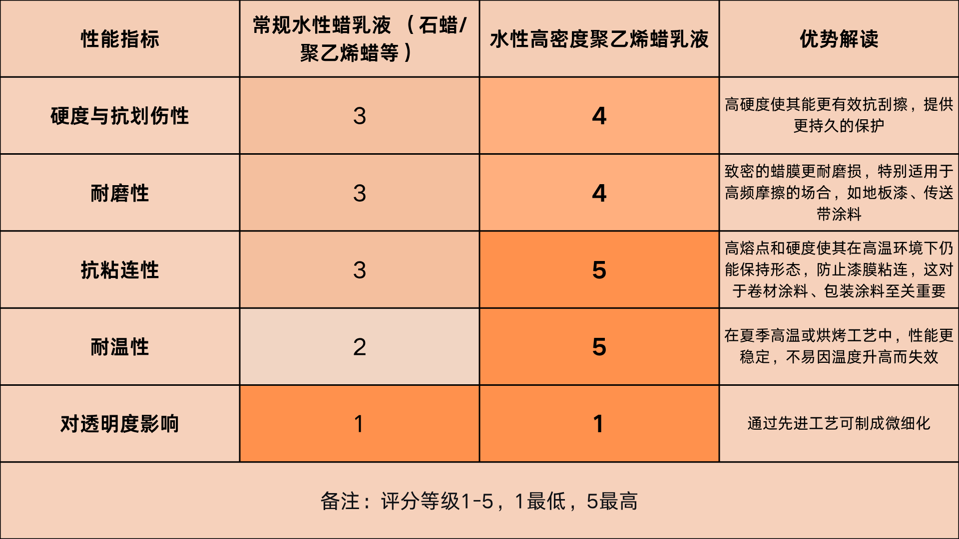 常规蜡乳液虽能提供基础保护,但在硬度、耐温性及抗粘连性上已逐渐无法满足高端工业应用的需求。选择水性高密度聚乙烯蜡乳液可实现性能提升,数据对比如下: