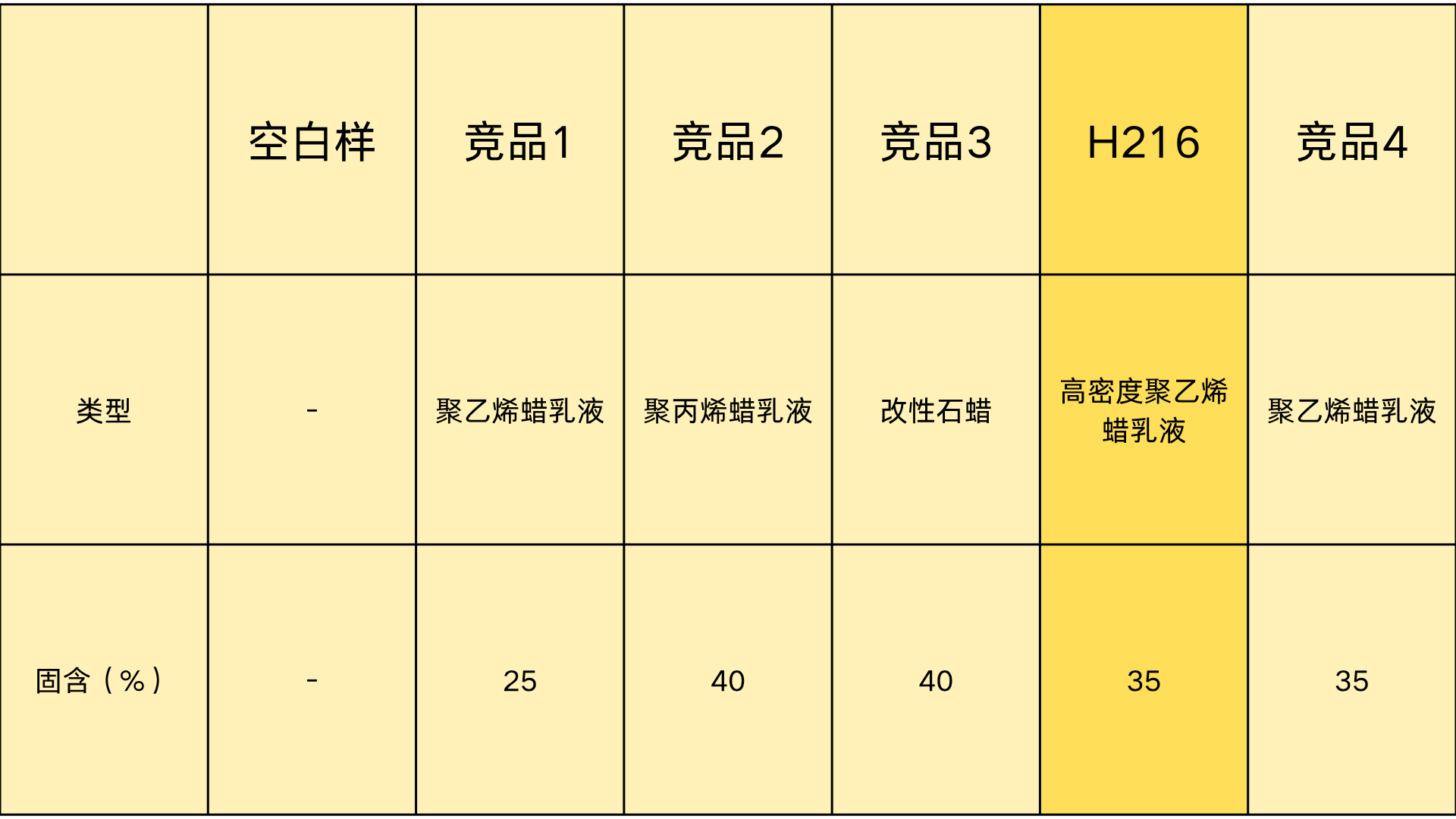 WAX AQ H216<竞品2、4<竞品1、空白<竞品3
